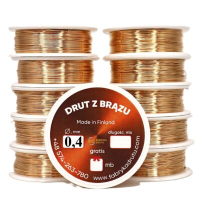 - W sprzedaży są wszystkie podstawowe rozmiary. W katalogu w momencie pisania tego artykułu znajdował się drut brązowy o średnicy 0,1 mm, 0,2 mm, 0,4 mm, 0,5 mm i inne. To są najbardziej powszechne rozmiary do precyzyjnych prac w warsztacie. Drucik brązowy może być również używany w niektórych typach biżuterii.